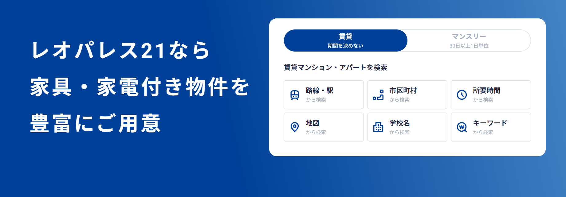 | 🏆 レオパレス21 (家具家電付き) |